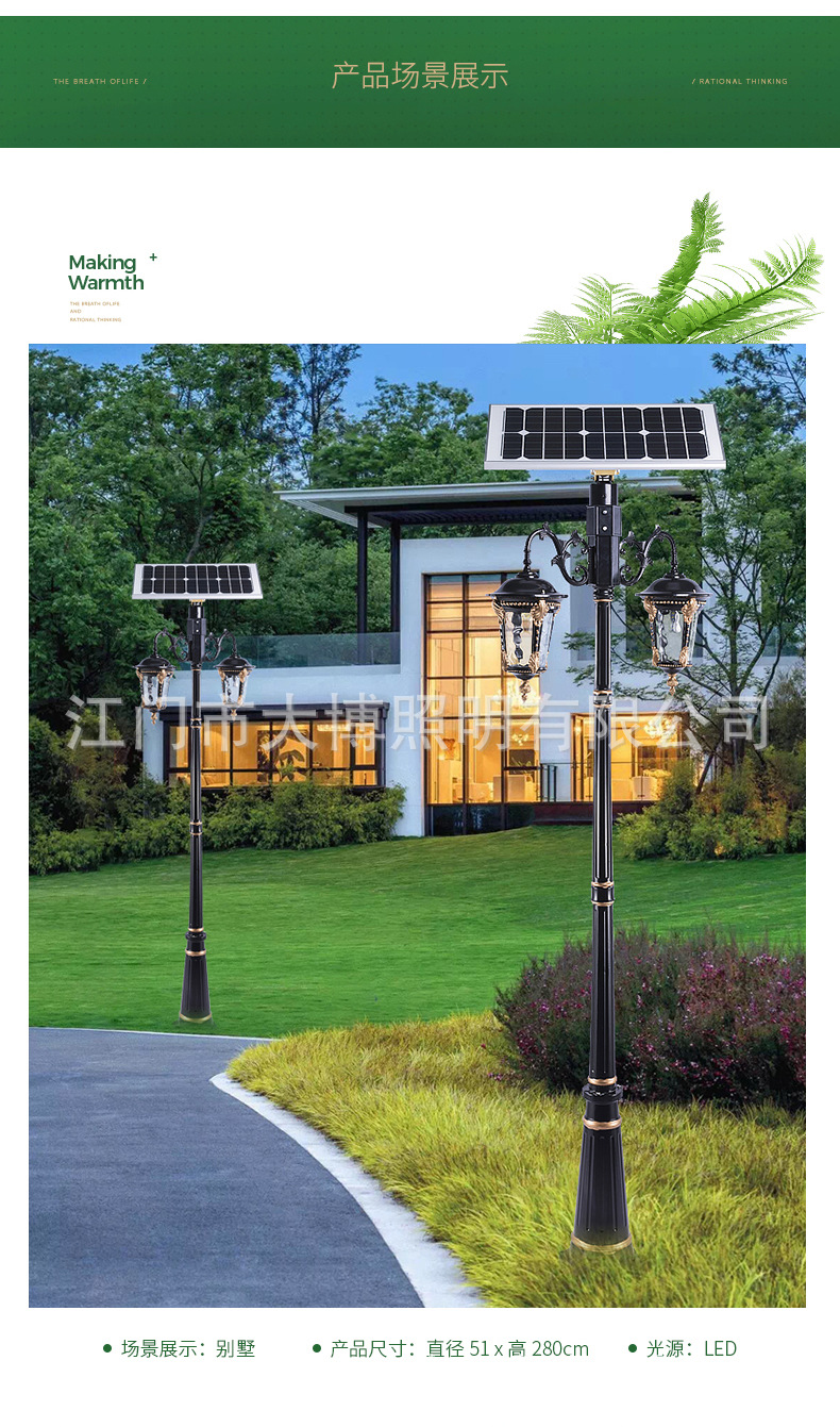古典歐式太陽能庭院燈別墅小區景觀亮化光伏一體化LED燈廠家批發